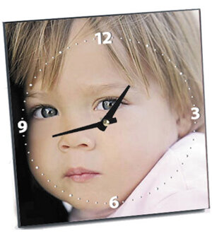 Orologi da tavolo e da parete personalizzabili con foto. Materiali: vetro, masonite, ceramica